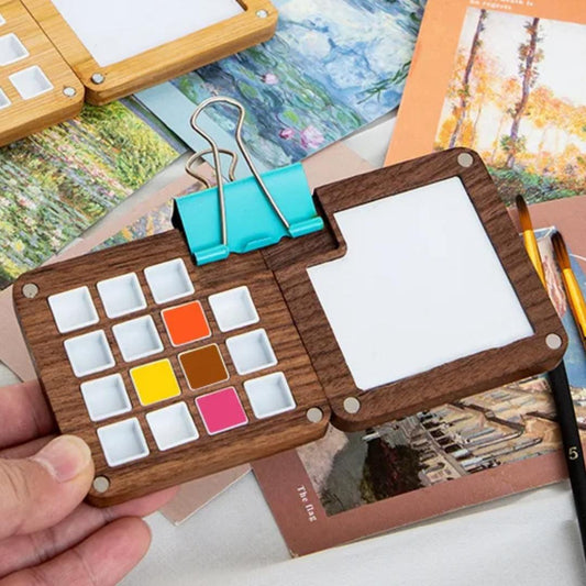ウォルナット製ミニカラーパレット - 持ち運びに便利なスケッチブックパレット